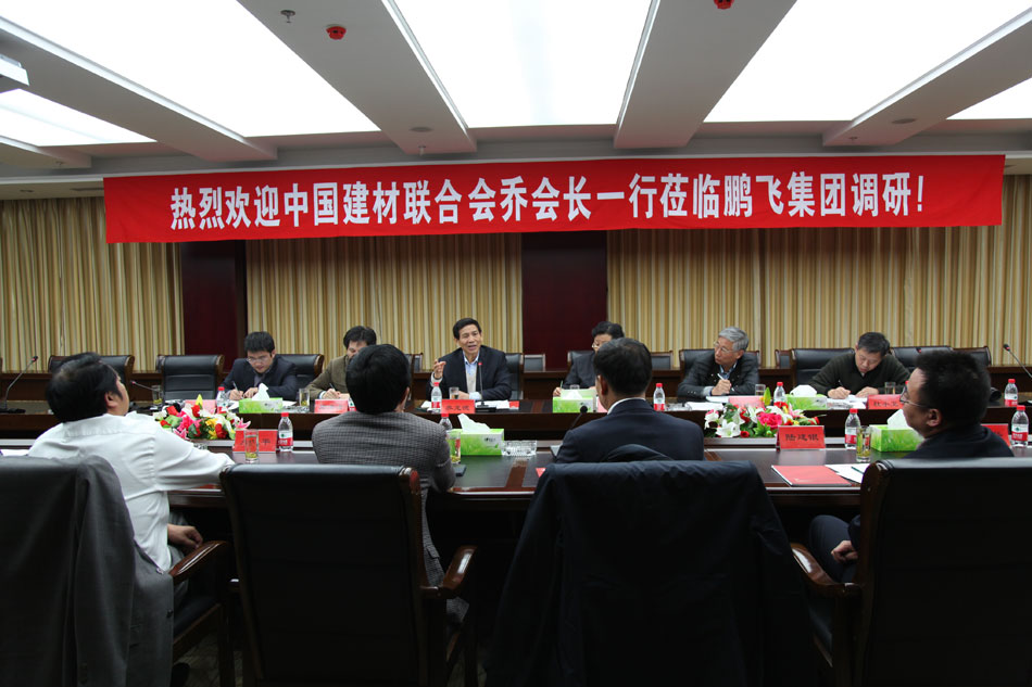 2014年11月25日,中國建材工業(yè)聯(lián)合會喬龍德會長到江蘇鵬飛集團現(xiàn)場考察,喬會長一行參觀了集團位于城北工業(yè)園的窯爐和節(jié)能粉磨設備生產現(xiàn)場、科技成果展廳,聽取了鵬飛集團董事長王家安關于落實全國建材系統(tǒng)工作會議精神和鵬飛集團轉型升級等方面的情況匯報。