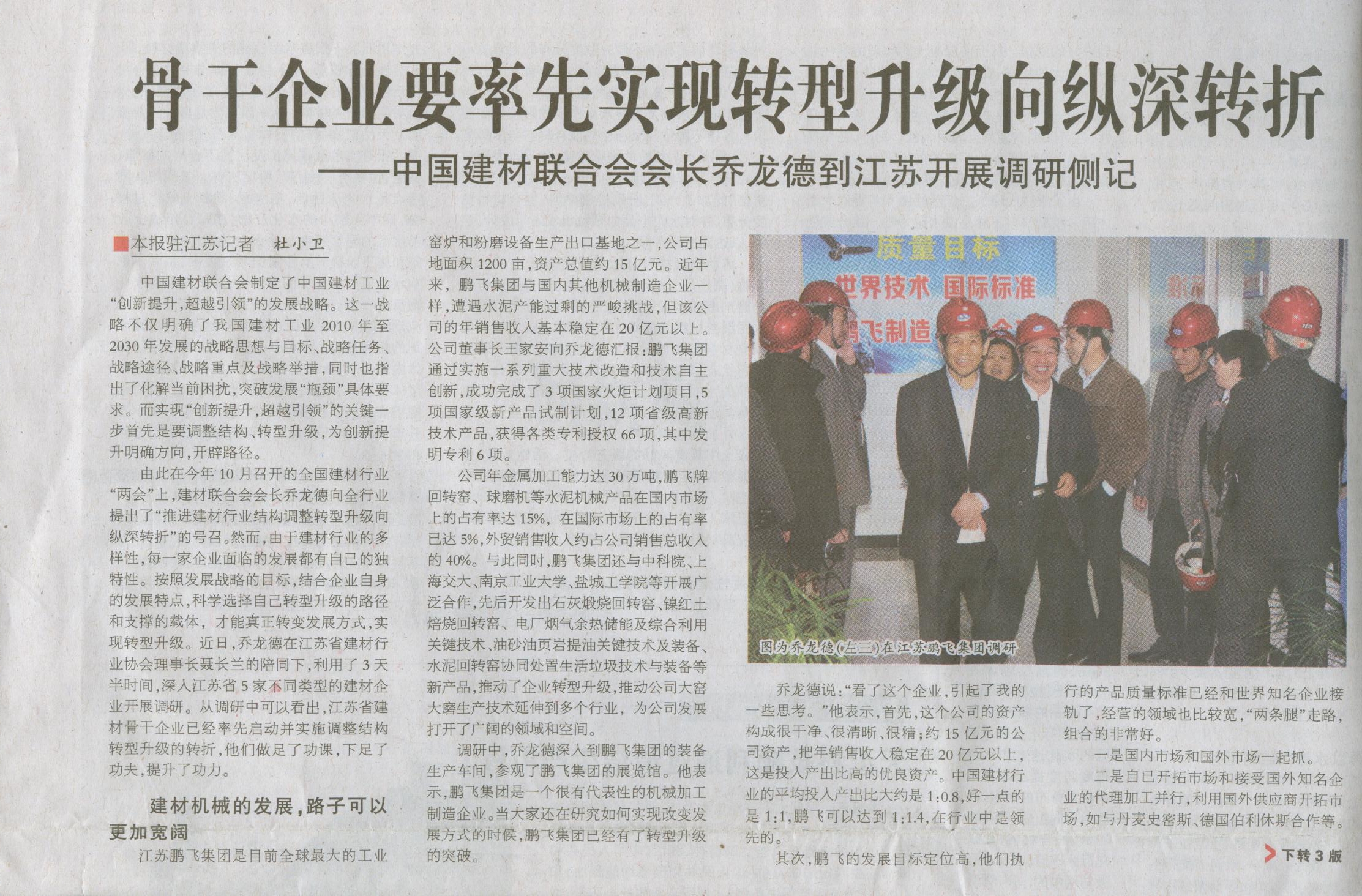 骨干企業(yè)要率先實(shí)現(xiàn)轉(zhuǎn)型升級(jí)向縱深轉(zhuǎn)折——中國建材聯(lián)合會(huì)會(huì)長喬龍德到江蘇開展調(diào)研側(cè)記