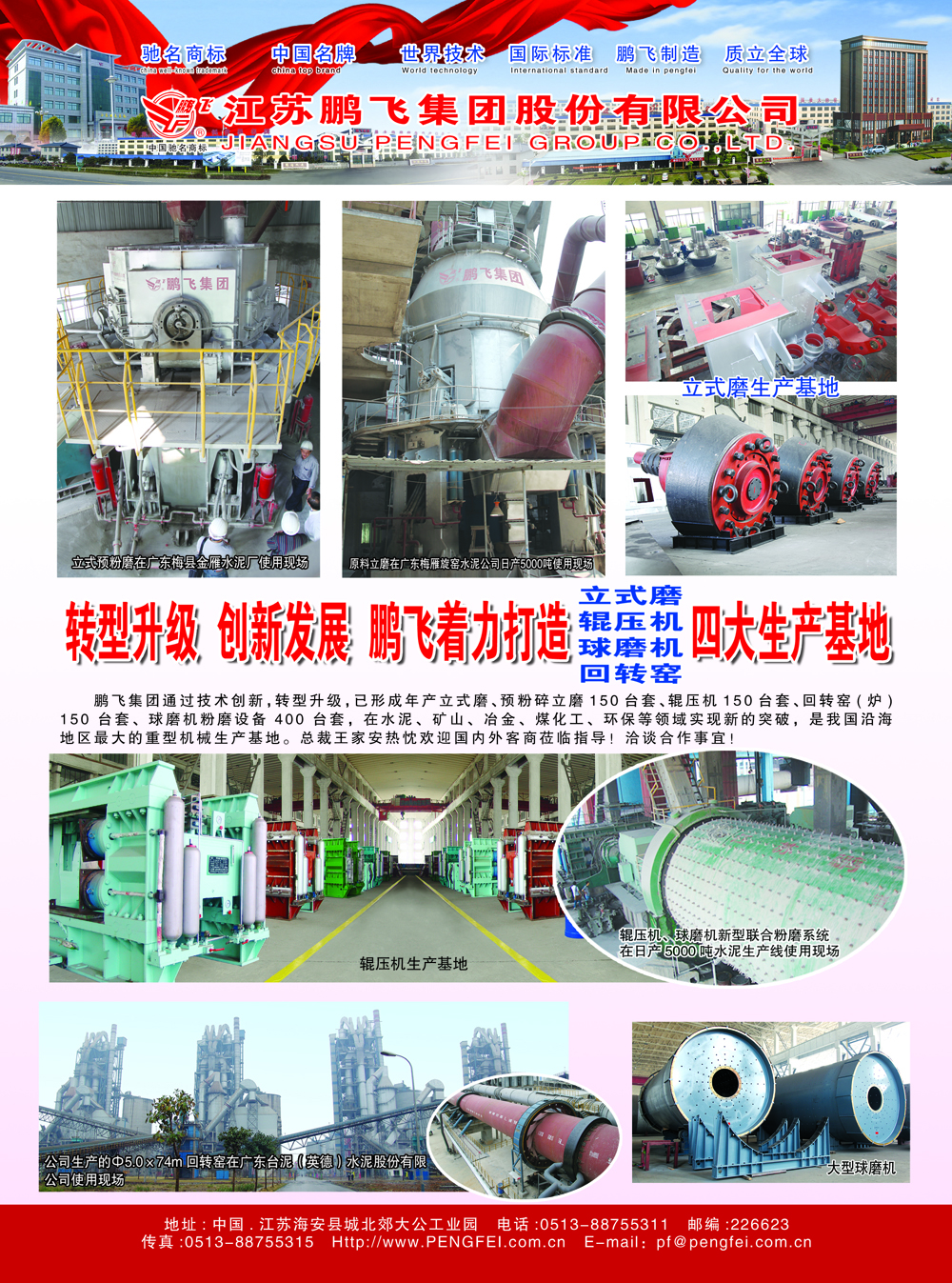 鵬飛集團(tuán)通過(guò)技術(shù)創(chuàng)新,轉(zhuǎn)型升級(jí),已形成年產(chǎn)立式磨、預(yù)粉碎立磨150臺(tái)套、輥壓機(jī)150臺(tái)套、回轉(zhuǎn)窯(爐)150臺(tái)套、球磨機(jī)粉磨設(shè)備400臺(tái)套,在水泥、礦山、冶金、煤化工、環(huán)保等領(lǐng)域?qū)崿F(xiàn)新的突破,是我國(guó)沿海地區(qū)大型重型機(jī)械生產(chǎn)基地??偛猛跫野矡岢罋g迎國(guó)內(nèi)外客商蒞臨指導(dǎo)!洽談合作事宜!