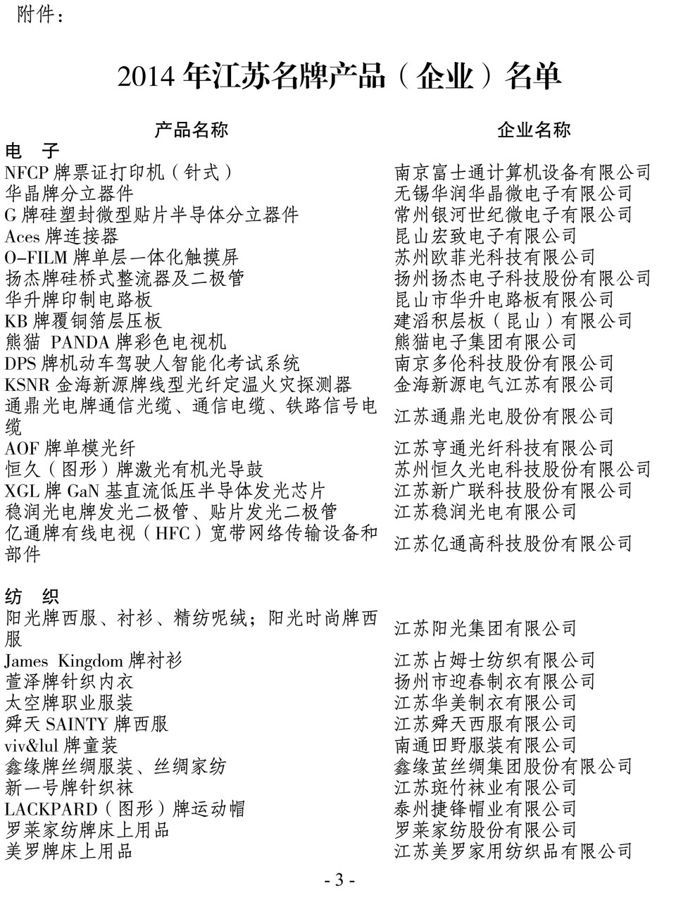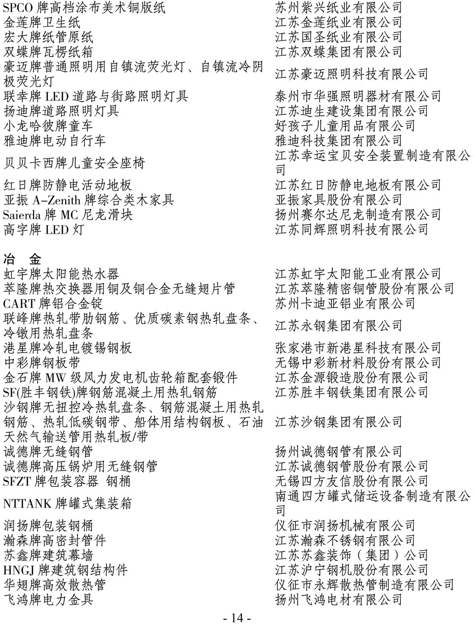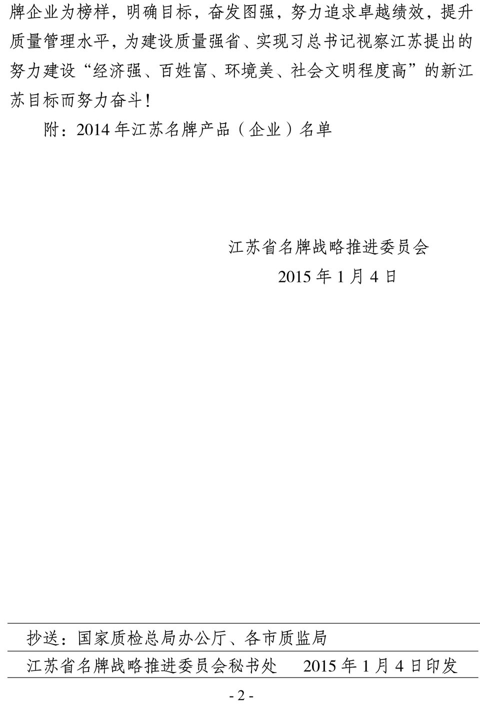 日前,江蘇省名牌戰(zhàn)略推進(jìn)委員會公布了2014年江蘇省名牌產(chǎn)品名單,“