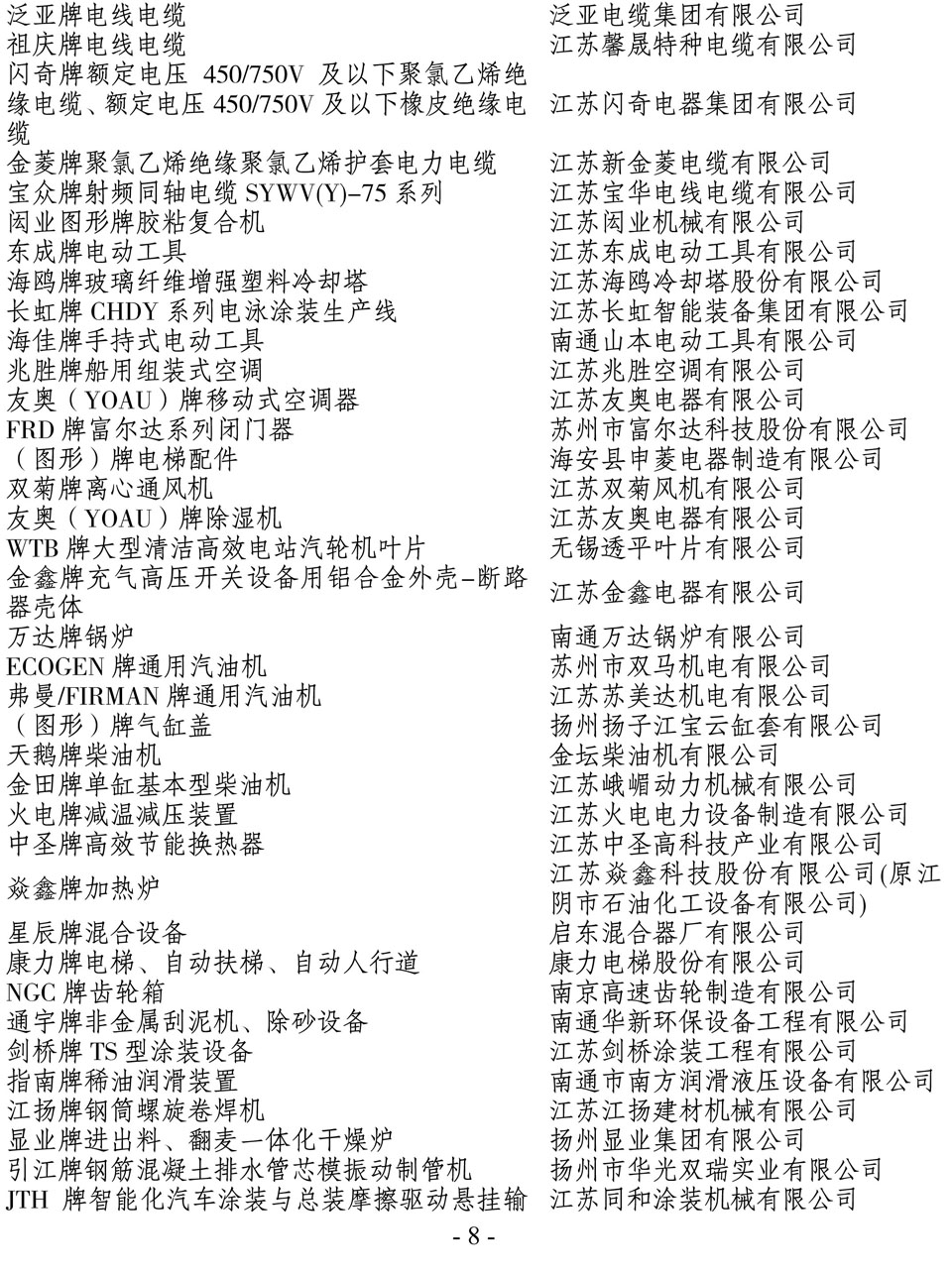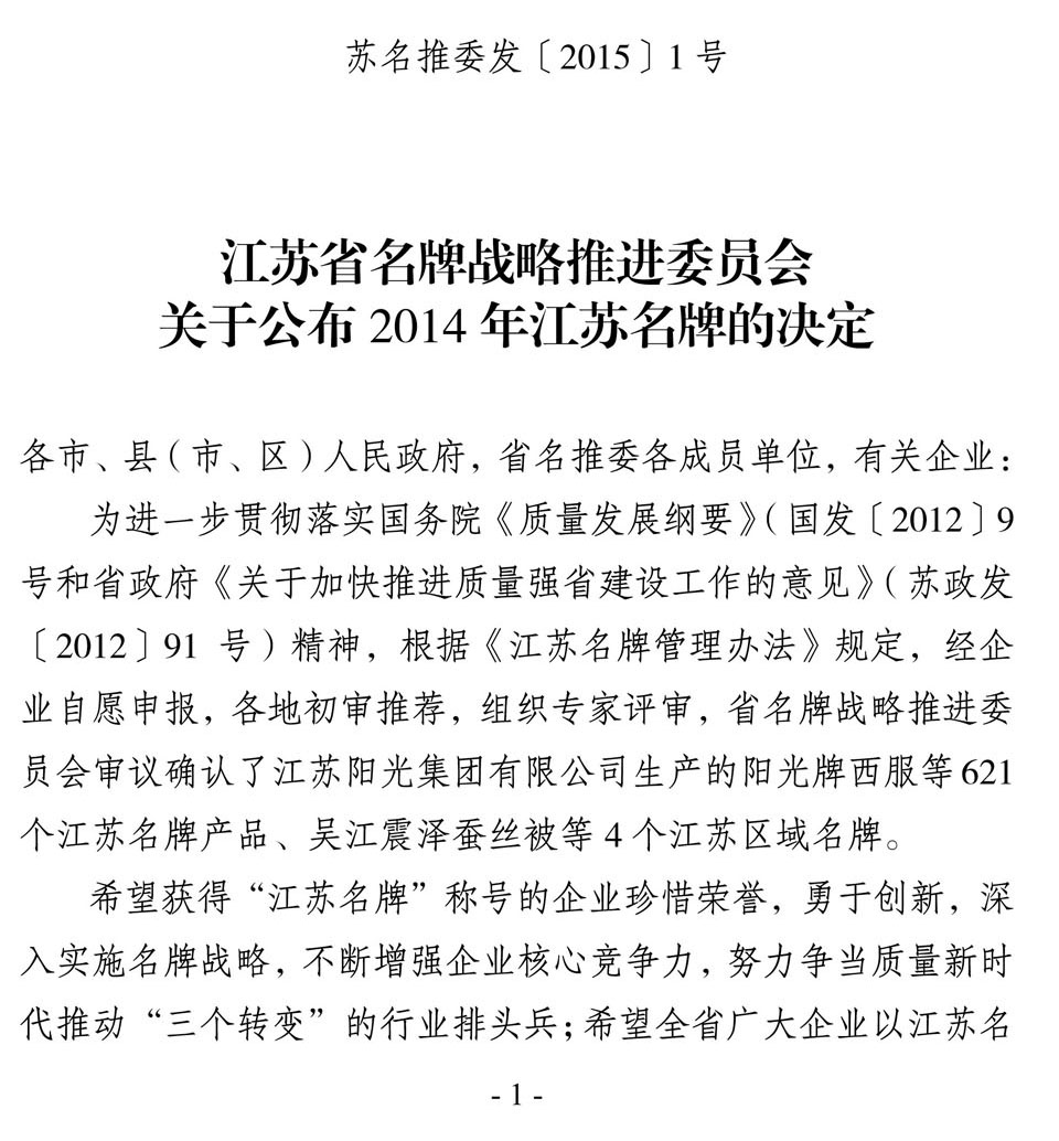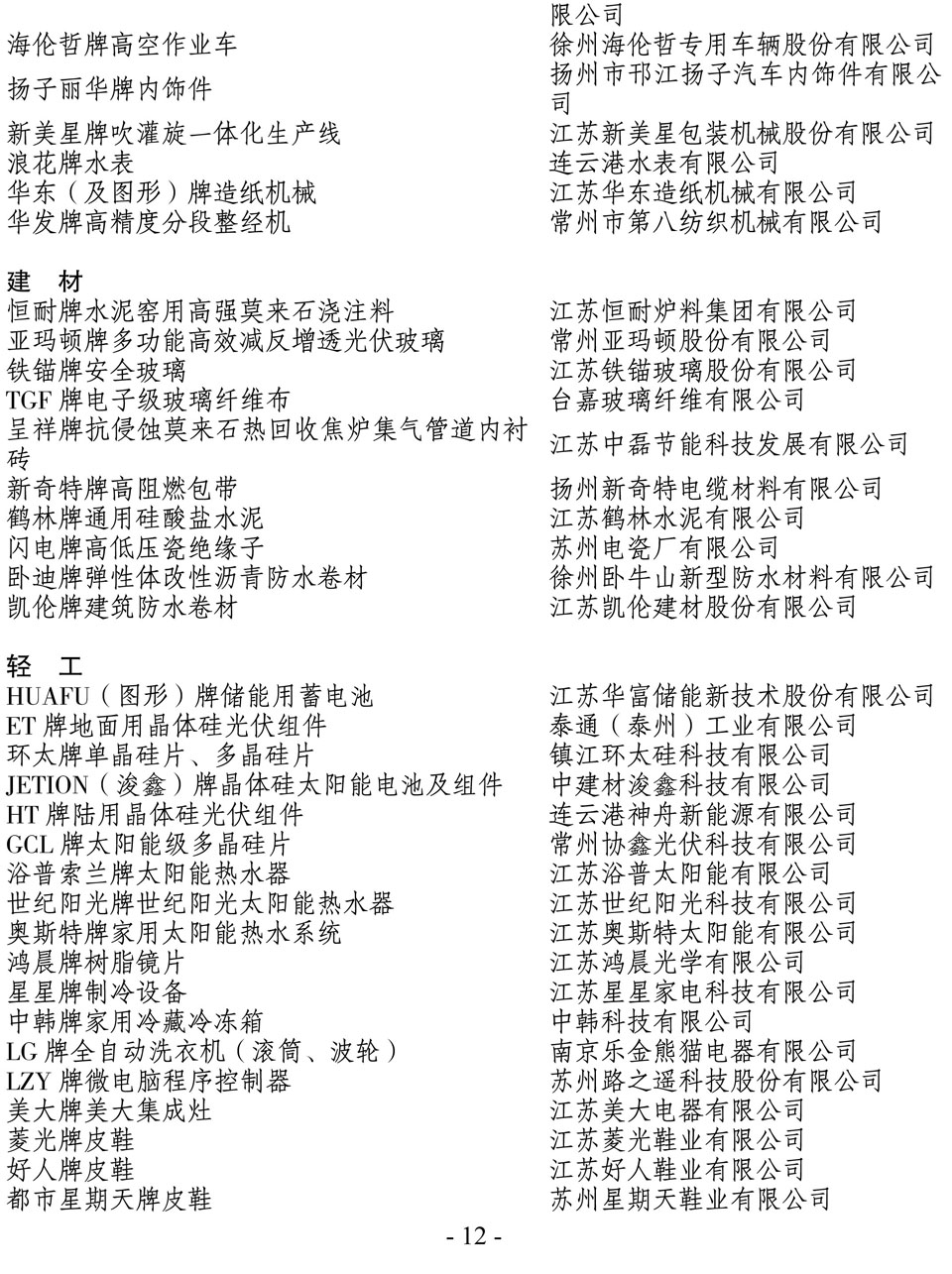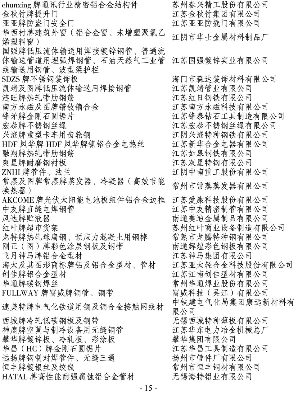 日前,江蘇省名牌戰(zhàn)略推進(jìn)委員會公布了2014年江蘇省名牌產(chǎn)品名單,“