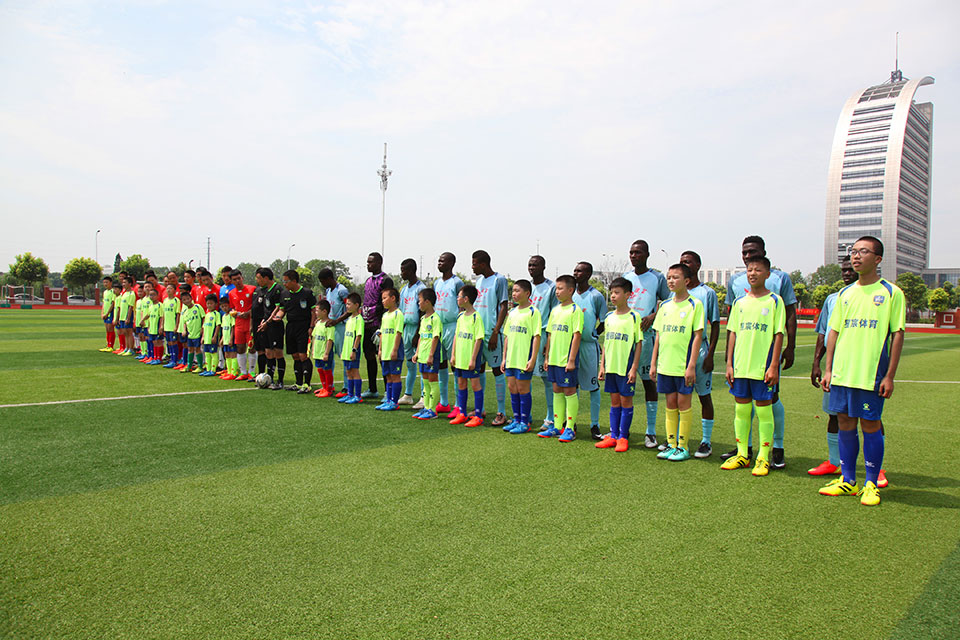 恰逢江蘇鵬飛集團(tuán)與*達(dá)成建設(shè)年產(chǎn)100萬噸水泥粉磨站項(xiàng)目合同,應(yīng)江蘇鵬飛集團(tuán)的邀請,7月15日*U17隊(duì)來到海安,并在海安城南實(shí)驗(yàn)中學(xué)與我縣教育聯(lián)隊(duì)舉行一場國際足球友誼賽,本次比賽由江蘇鵬飛集團(tuán)全程贊助。時(shí)值盛夏,天氣炎熱,但一點(diǎn)也不影響比賽的順利進(jìn)行,球員的激情和觀眾的熱情充盈整個(gè)賽場,場面和諧融洽,雖為比賽,實(shí)則是相互交流學(xué)習(xí),充分發(fā)揮了友誼第一,比賽第二的精神。此次友誼賽是我縣本土球隊(duì)首次與國際球隊(duì)接洽,在比賽中也讓我縣教育聯(lián)隊(duì)受益匪淺、感觸頗深,對今后青少年校園足球教育大有裨益。比賽結(jié)束后,董事長王家安帶領(lǐng)*U17足球隊(duì)員參觀了鵬飛集團(tuán)生產(chǎn)基地,并舉行座談及饋贈(zèng)禮品,簡單的一場足球賽,卻為譜寫中非友誼添上實(shí)實(shí)在在的一筆。