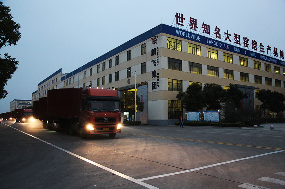 11月21日江蘇鵬飛集團股份有限公司內(nèi)一片忙碌,工人師傅們?yōu)槌隹贏J5臺Φ5.4×52米回轉(zhuǎn)窯發(fā)貨做著準備。公司經(jīng)過數(shù)月的加班加點終于保質(zhì)按期完成5臺Φ5.4×52米回轉(zhuǎn)窯制造。