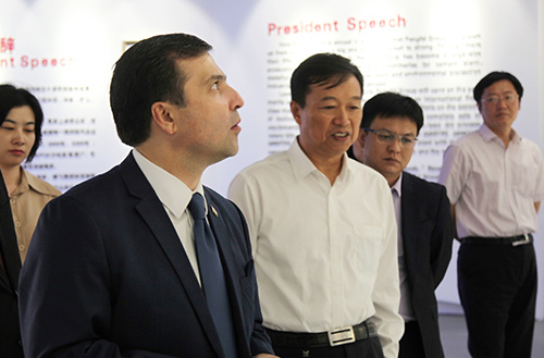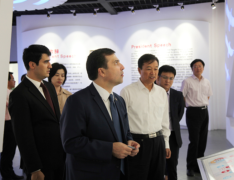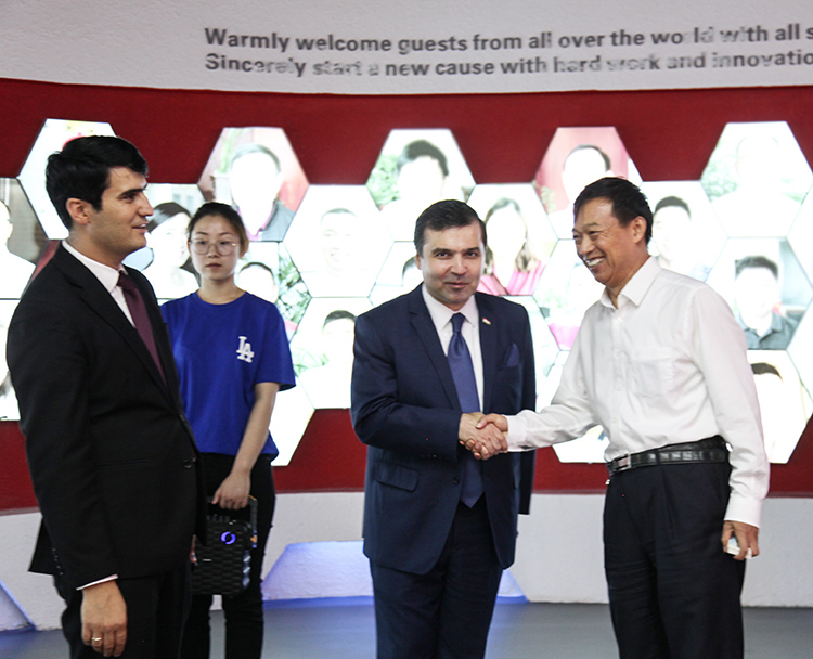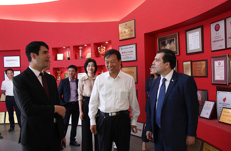 秋風(fēng)送爽,丹桂飄香。24日下午鵬飛集團(tuán)迎來了尊貴的客人——塔吉克斯坦駐中國(guó)大使達(dá)夫拉·特佐達(dá)先生一行。大使先生在海安市宣傳部領(lǐng)導(dǎo)的陪同下,參觀考察鵬飛集團(tuán)。