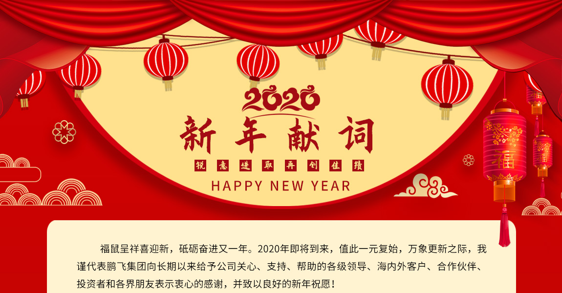 福鼠呈祥喜迎新,砥礪奮進(jìn)又一年。2020年即將到來(lái),值此一元復(fù)始,萬(wàn)象更新之際,我謹(jǐn)代表鵬飛集團(tuán)向長(zhǎng)期以來(lái)給予公司關(guān)心、支持、幫助的各級(jí)領(lǐng)導(dǎo)、海內(nèi)外客戶(hù)、合作伙伴、投資者和各界朋友表示衷心的感謝,并致以良好的新年祝愿!