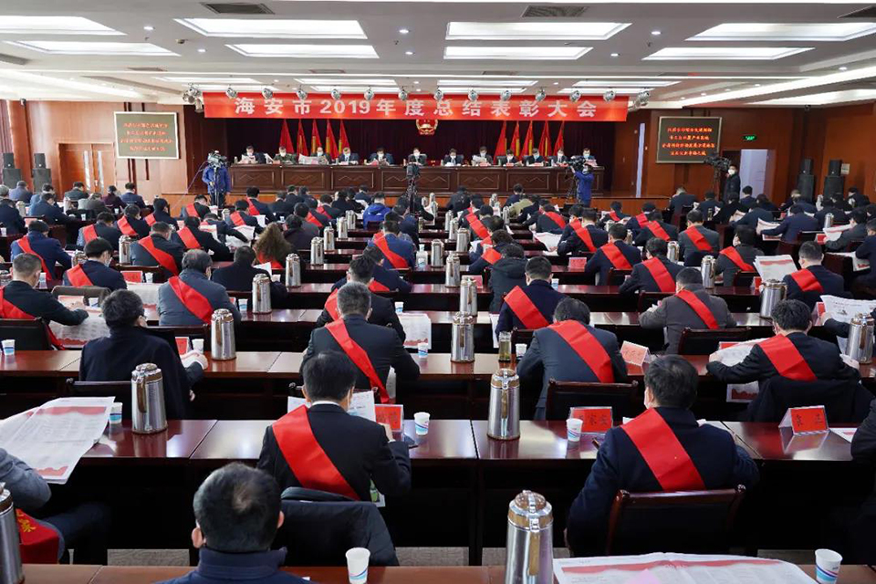 3月14日上午,海安市召開(kāi)2019年度總結(jié)表彰大會(huì),表彰全市各條戰(zhàn)線涌現(xiàn)的先進(jìn)單位和個(gè)人,由于受新型冠狀肺炎疫情的影響,會(huì)議實(shí)施一人一桌簡(jiǎn)便召開(kāi)。會(huì)議設(shè)主會(huì)場(chǎng)和分會(huì)場(chǎng),由海安融媒體中心進(jìn)行現(xiàn)場(chǎng)直播。市四套班子全體負(fù)責(zé)人,各區(qū)鎮(zhèn)、各部門(mén)主要負(fù)責(zé)人、受表彰對(duì)象代表出席會(huì)議。會(huì)議由于立忠市長(zhǎng)主持,宣讀表彰決定,獲獎(jiǎng)單位分別上臺(tái)領(lǐng)獎(jiǎng),顧國(guó)標(biāo)書(shū)記做了重要講話。鵬飛集團(tuán)榮獲海安市委、市政府授予的杰出貢獻(xiàn)獎(jiǎng)、工業(yè)百?gòu)?qiáng)企業(yè)、開(kāi)放型經(jīng)濟(jì)先進(jìn)企業(yè)、海安市市長(zhǎng)質(zhì)量獎(jiǎng)、王家安董事長(zhǎng)當(dāng)選六星級(jí)企業(yè)家。