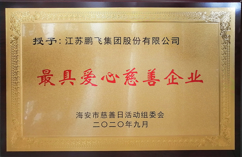 近日,海安市慈善基金會表彰了慈善工作先進(jìn)集體和先進(jìn)個人,基于在履行社會公益責(zé)任方面的突出表現(xiàn)和良好反響,江蘇鵬飛集團(tuán)被慈善基金會授予“最具愛心慈善企業(yè)”稱號。