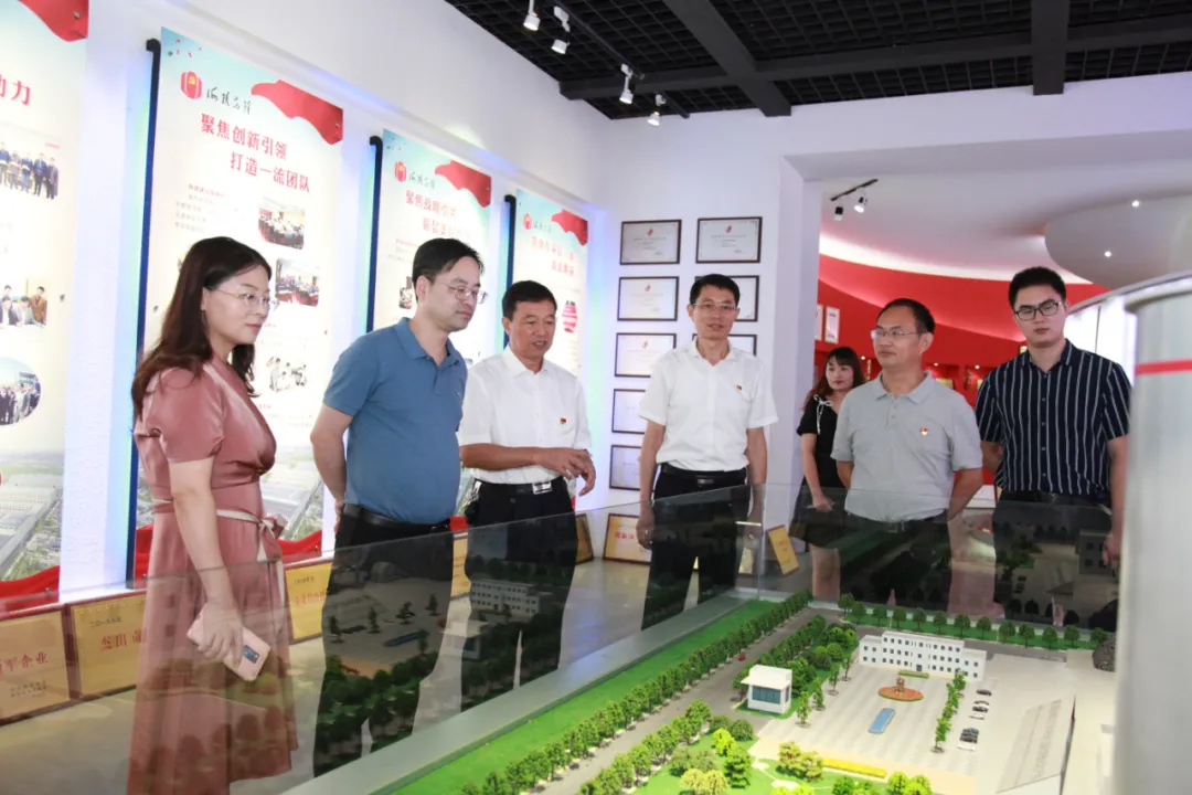 調(diào)研組一行參觀了江蘇鵬飛集團(tuán)黨委的展館,深入了解了鵬飛集團(tuán)黨委近年來黨建創(chuàng)新引領(lǐng)、企業(yè)文化理念、產(chǎn)業(yè)轉(zhuǎn)型升級、“一帶一路”建設(shè)、社會責(zé)任履行等方面的具體舉措。江蘇集團(tuán)黨委以“強翼——鵬程萬里”為黨建工作品牌,創(chuàng)新黨建“3+3+3”工作法,積極引導(dǎo)企業(yè)黨員發(fā)揚“不忘初心,矢志奮斗”新時代精神,獲評南通市先進(jìn)基層黨組織、南通市黨建工作示范點,勞模創(chuàng)新工作室于2019年榮獲全國工人先鋒號。