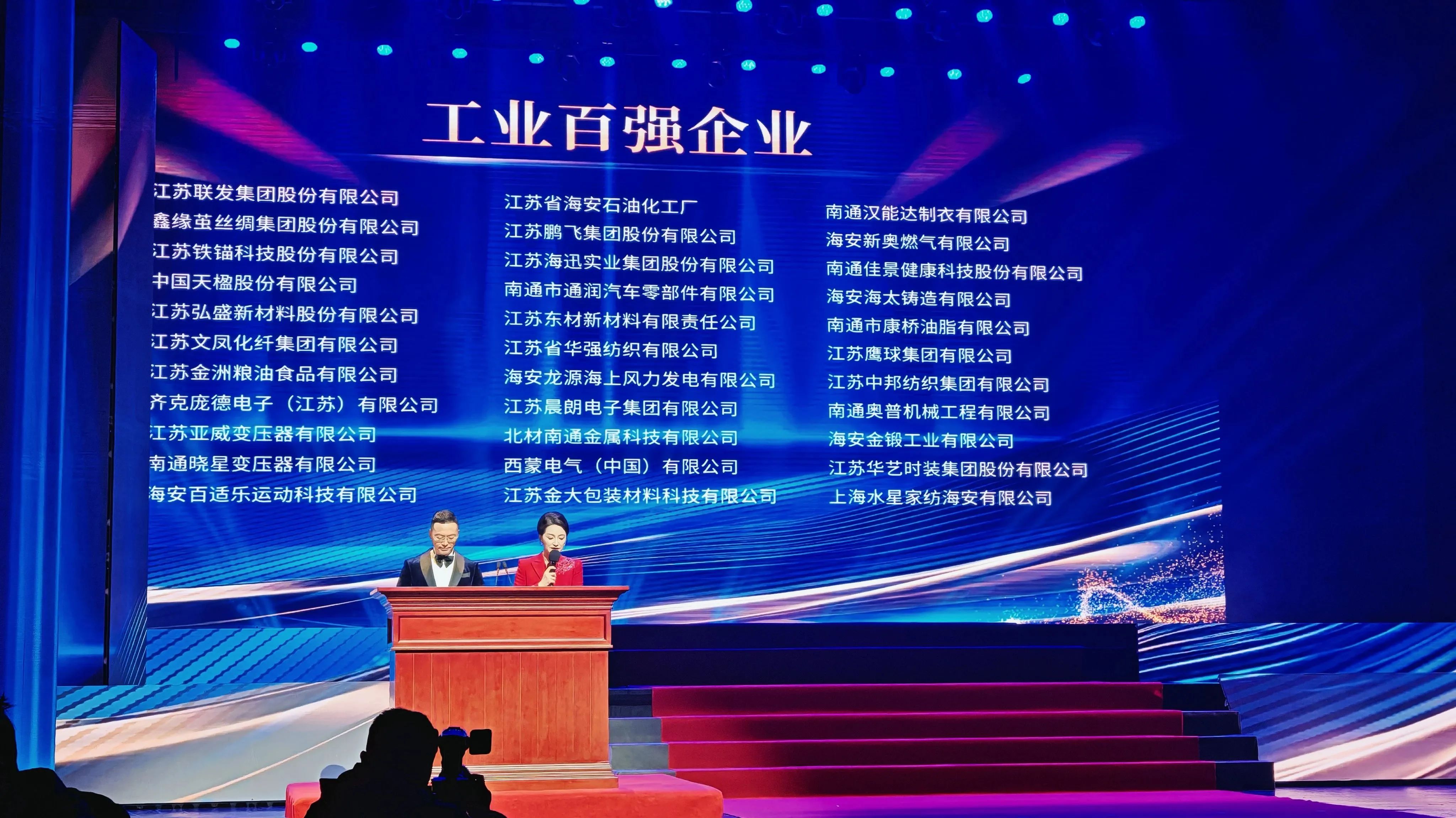2025年2月4日,海安市經(jīng)濟(jì)高質(zhì)量發(fā)展大會(huì)暨2024年度影響力企業(yè)家頒獎(jiǎng)儀式舉行。市四套班子全體負(fù)責(zé)人,各區(qū)鎮(zhèn)、市級(jí)機(jī)關(guān)各部門主要負(fù)責(zé)人,十大專業(yè)園區(qū)辦公室、產(chǎn)業(yè)鏈培育辦公室負(fù)責(zé)人,市屬國(guó)企以及供電、燃?xì)?、通信、金融、在海高校、各產(chǎn)業(yè)研究院主要負(fù)責(zé)人,全市約800家企業(yè)主要負(fù)責(zé)人參加活動(dòng)。會(huì)議通報(bào)了農(nóng)業(yè)高質(zhì)量發(fā)展十強(qiáng)企業(yè)、開放型經(jīng)濟(jì)先進(jìn)企業(yè)、稅收貢獻(xiàn)超億元企業(yè)、稅收貢獻(xiàn)超5000萬元企業(yè)、工業(yè)百?gòu)?qiáng)企業(yè)、現(xiàn)代服務(wù)業(yè)十強(qiáng)企業(yè)、星級(jí)企業(yè)家、建筑業(yè)十強(qiáng)企業(yè)、服務(wù)地方經(jīng)濟(jì)發(fā)展優(yōu)勝金融單位名單,發(fā)布了2024年度海安影響力企業(yè)家名單。