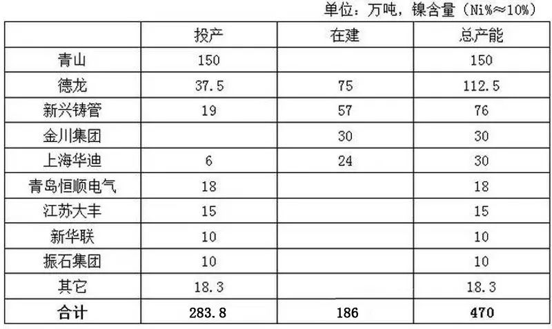 中國鎳冶煉企業(yè)項目進展情況