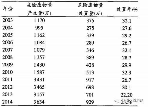 表1:2003—2014年中國工業(yè)危險(xiǎn)廢物處置情況