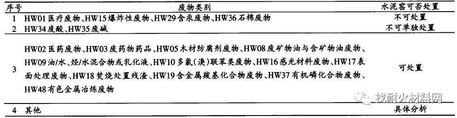 表2 水泥窯共處置危險(xiǎn)廢物種類