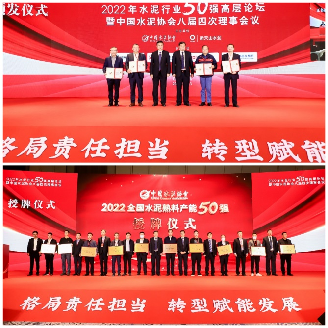 會議期間還舉辦了隆重的協(xié)會新增補變更副會長、新增常務理事單位頒發(fā)證書儀式以及2022年全國水泥熟料產(chǎn)能50強授牌儀式。
