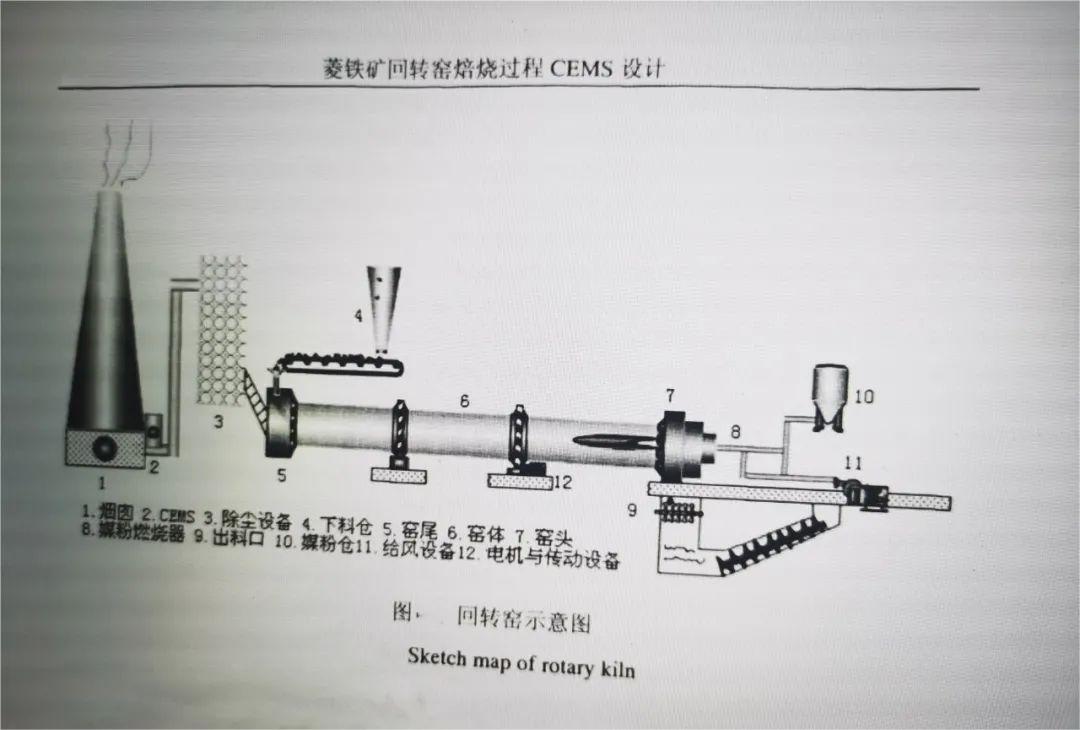 (1)氣體路線分析:氣體是從搖頭燃燒器輸入的,煤粉在一二次給風(fēng)的燃燒下變成了氣體,其中包括 CO、CO2和原空氣中的N2、O2等氣體 。同時(shí)菱鐵礦在燃燒帶分解出CO、CO2、SO2等氣體。孰料的出料通過水冷,故水蒸氣是少不了的。由于氣流是高溫高速流動(dòng)的,氣體中含有大量的粉塵,氣體上游到窯尾,給不斷翻滾的物料預(yù)熱,并脫去料石中的水分。接下來就進(jìn)入水冷設(shè)備和除塵設(shè)備,通過冷水套中的冷水逆流來降溫,從而去除大量水分。緊接著在旋風(fēng)除塵中離心作用出去大量的大顆粒塵粒。然后再利用布袋除塵器中的布袋細(xì)孔過濾大量的小顆粒,達(dá)到除塵的目的,最后經(jīng)煙囪排出 。