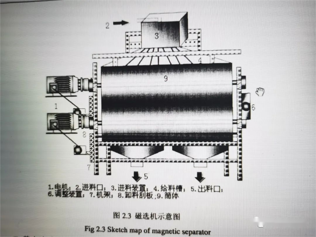 炙熱的菱鐵礦如果接觸氧氣很容易轉(zhuǎn)化為r-Fe2O3 ,甚至弱性的a-Fe2O3 ,導(dǎo)致弱磁選困難,為了防止焙燒礦在出窯時(shí)弱磁性赤鐵礦,故焙燒礦出窯方案設(shè)計(jì)為水封拉鏈水冷,出水溫度一般為70°C 左右。然后進(jìn)料倉,再經(jīng)過磨碎分級(jí)進(jìn)行磁選,選出精礦粉。