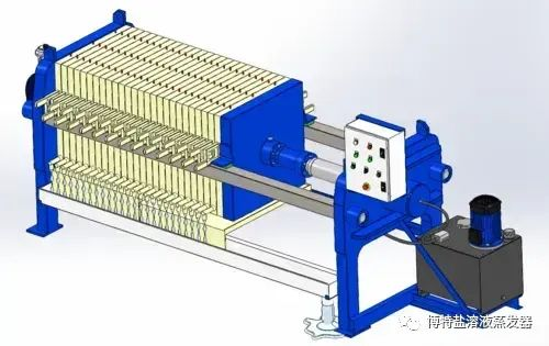過濾:中和料漿泵入壓濾機(jī)進(jìn)行固液分離,當(dāng)料漿泵流量衰減至5m3/h左右時(shí)壓濾機(jī)停止進(jìn)料,濾出濾液主要為硫酸鋰濾液,經(jīng)濾液槽暫存后進(jìn)入除雜工序。