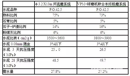 關(guān)于水泥質(zhì)量,我們與該廠老生產(chǎn)線(φ3.2 X13m開流磨系統(tǒng))所生產(chǎn)的水泥進(jìn)行對比,結(jié)果如下: