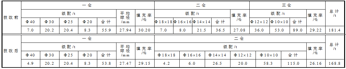 表2 技改前后研磨體級配