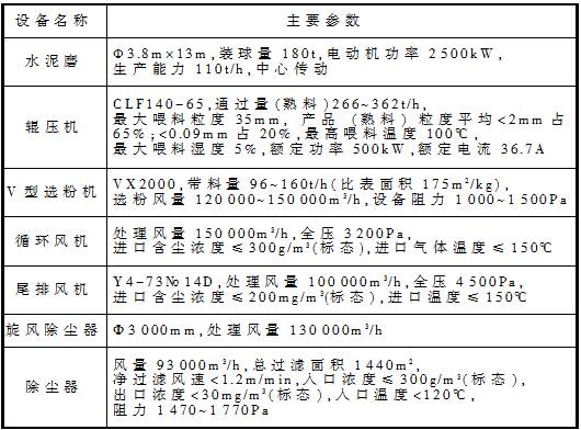 表1 水泥系統(tǒng)的主機配置