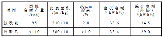 表3 技改前后粉磨系統(tǒng)生產(chǎn)技術(shù)指標月平均值