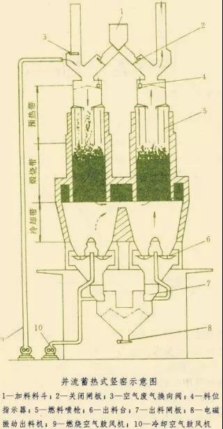 并流蓄熱式豎窯結構示意圖